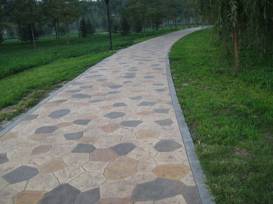 彩色地坪廣泛流行于國外、并于近年引進國內的一種新型地面鋪裝材料、衡水跨世建筑景觀科技有限公司引進美國裝飾混凝土先進技術生產仿石、仿木裝飾混凝土、產品具有古樸、自然、整體性強、顏色持久特點。?、可廣泛應用于公園、廣場、花園小區、園林景觀、別墅等一切室內外路面。?、該產品是與混凝土澆筑同步施工的施工工藝、具有美觀、耐磨、環保、新穎、質感強、并且色彩持久、耐用等特點。不僅裝飾性強、而且抗壓抗折強度在普通混凝土地面的2-3倍以上、是廣場磚、地磚、荷蘭磚、彩道板磚等產品的理想替代品。?該公司還銷售地坪材料:酸著色劑、脫膜粉、耐磨劑、提供技術指導。、