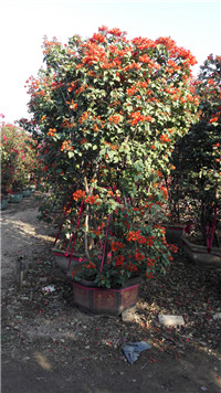 橙色三角梅盆景、高度2.5M、冠1.3-1.7M